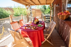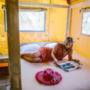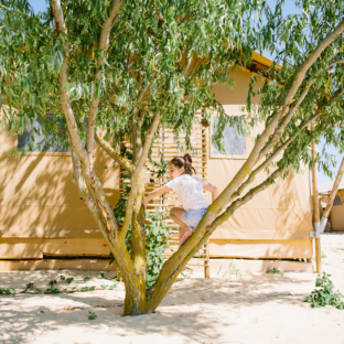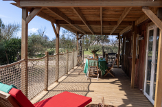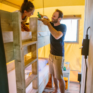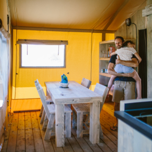 En bordure d’une zone naturelle, découvrez nos confortables tentes glamping équipées d’une chambre parentale, d’une autre chambre avec deux ou trois lits simples et d’un séjour/cuisine. Après une journée riche en découvertes des merveilles du sud de la France, prenez le temps de vous reposer dans le hamac installé sur la terrasse en bois couverte. Profitez des hébergements insolites du Sérignan Plage, pour un séjour tout confort dans une tente entièrement construite en bois et matériaux naturels !